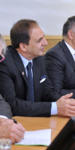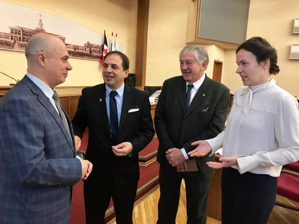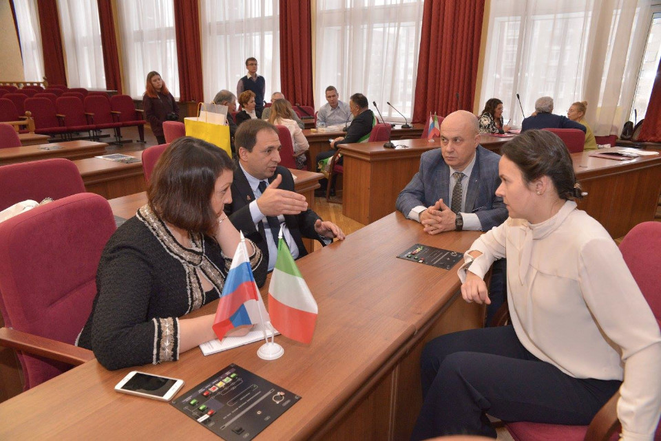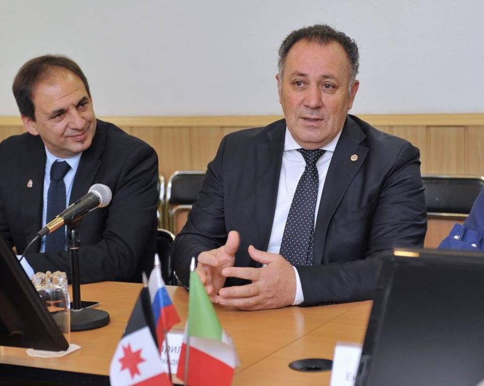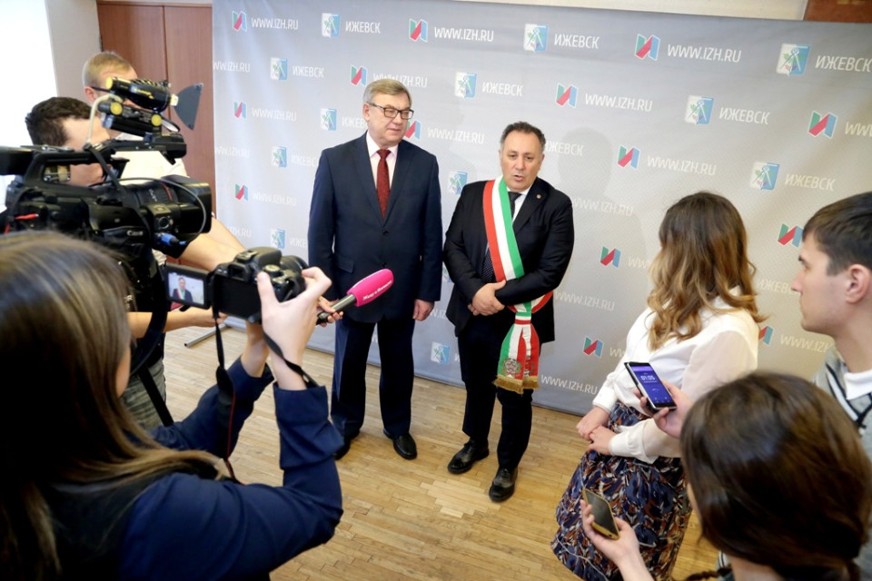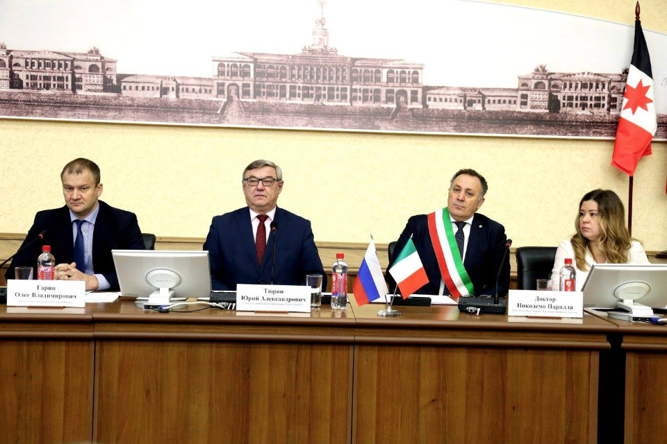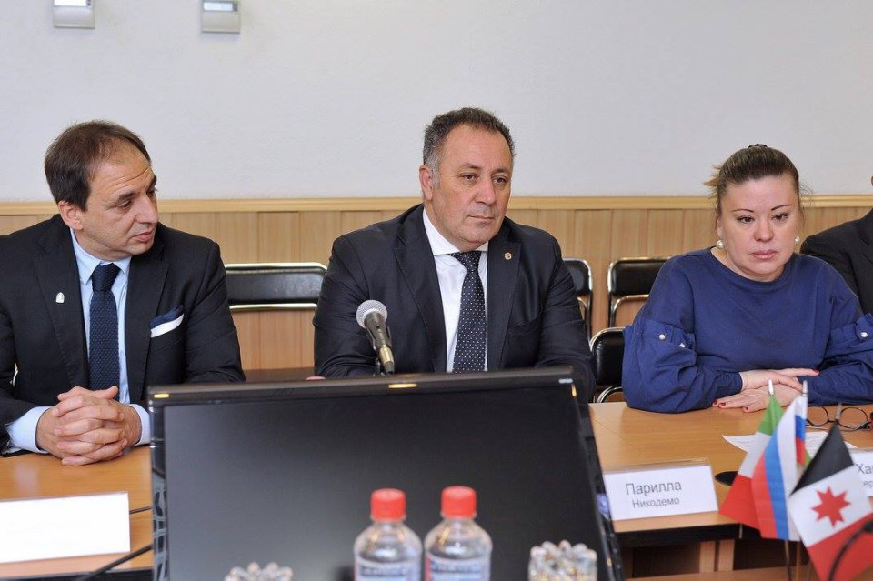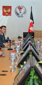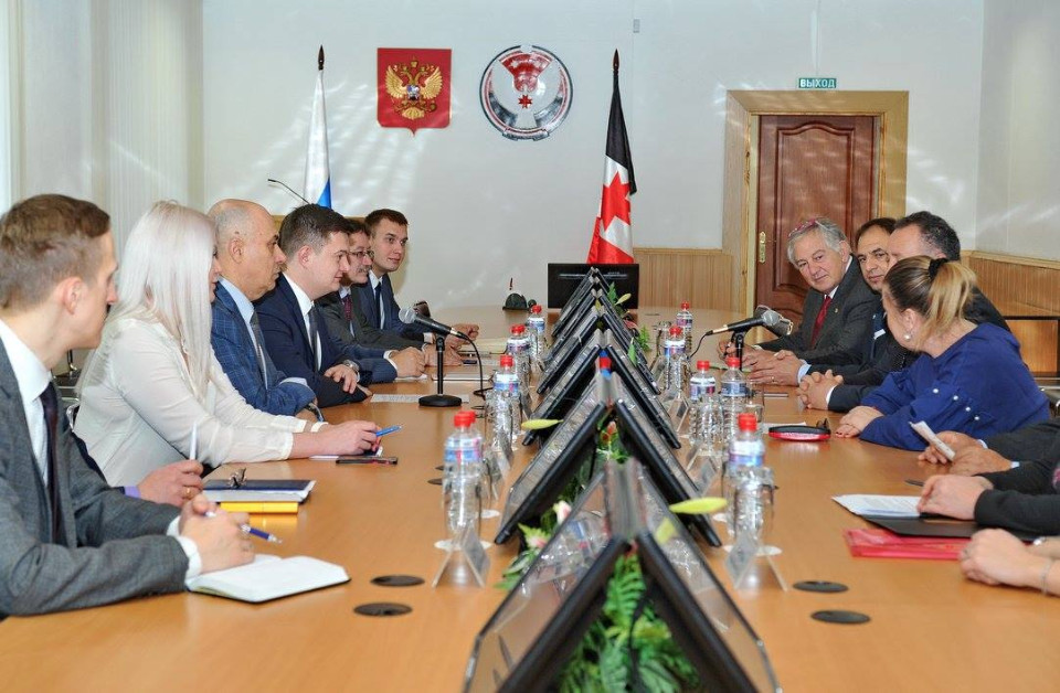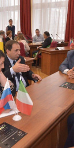 Delegazione calabrese in Russia, guidata dal Sindaco di Cirò Marina Nicodemo Parrilla (7)Diversi, prestigiosi e proficui gli incontri avuti dalla delegazione italiana nella fitta agenda di appuntamenti in programma: la tavola rotonda sulla prospettive della cooperazione tra la Capitale IZHEVSK, la Repubblica di UDMURTIA e la FEDERAZIONE RUSSA con la Città di CIRÒ Marina, la Provincia di CROTONE, la REGIONE CALABRIA e l’ITALIA, ospitata nella sala delle riunioni della DUMA a IZHEVSK e nel corso della quale è stato firmato un protocollo di intesa per un gemellaggio tra le due città; il momento istituzionale con il primo vice governatore dell’UDMURTIA Aleksandr Aleksandrovich SVININ; la tappa ufficiale nella Camera di Commercio dell’UDMURTIA e, infine, l’incontro ufficiale della delegazione italiana con Mikhail Viktorovich KHOMICH, Rappresentante del Governatore della Repubblica Autonoma di UDMURTIA per il Presidente della Federazione Russa Vladimir PUTIN.
