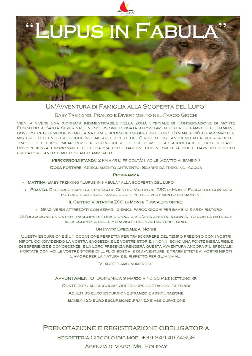 Santa Severina, [Data] – Il Circolo Ibis odv invita famiglie e bambini a partecipare all’evento “Lupus in Fabula”, un’escursione speciale alla scoperta del lupo nella Zona Speciale di Conservazione (ZSC) di Monte Fuscaldo, Santa Severina, che si terrà domenica 9 marzo alle ore 10:00.