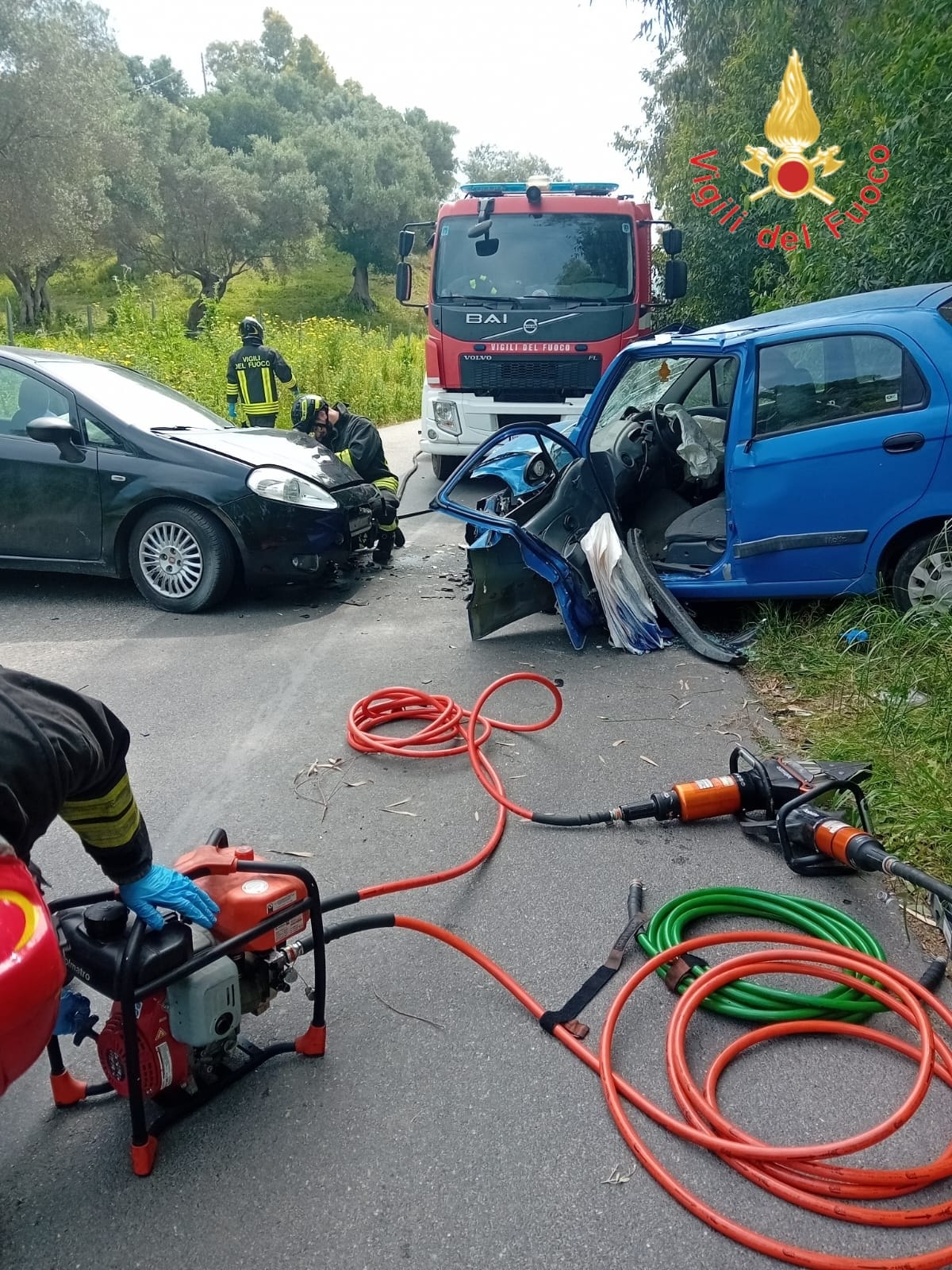 Incidente stradale fra due autovetture sulla SP nel comune Carfizzi. La squadra dei vigili del del Comando di Crotone, distaccamento di Cirò Marina, giunta sul posto ha provveduto ad estrarre la persona ferita rimasta incastrata all’interno del veicolo.