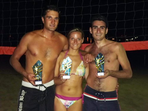 Nelle giornate di venerdì 13, sabato 14 e domenica 15 si è svolto il torneo di Beach Volley 3×3 misto, le squadre che si sono date battaglia già da venerdì presentavano un buon tasso tecnico, inquanto formate da giocatori in attività ma anche da ex giocatori che si dilettano con il beach volley. Sabato i primi verdetti, a rimanere esclusi dalle semfinali erano il trio formato da Luigi Asteriti, Romina Pioli e Carla Previtera, insieme alla squadra di Piero Asteriti, Jessica Panucci, Marta Scida e Aryanna Muscò, mentre le altre 4 squadre si portavano avanti fino alle semifinali dove il sorteggio ha messo di fronte la squadra di Francesco Strigaro, Domenico Mazzei e Luly Martina che ha dovuto sudare per battere quelli che sembravano i favoriti del torneo Matteo Ambrosio, Arianna Pesce e Pierpaolo Calabretta che si sono dovuti accontentare della finale di consolazione poi vinta. Per l’altra semfinale incrociavano i guantoni la squadra di Marco Buscema, Francesca Ussia e Francesco Corrado che chiusi dal pronostico rendevano la vita dura al trio Giuseppe Scida, Giosi Iorno e Miriam Reale che comunqe portavano a casa la vittoria con un sofferto 2-1. La finalissima si è disputata verso le ore 20,30 e a fare da cornice all’evento un pubblico competente che applaudiva le giocate di entrambe le squadre ma soprattutto quelle di Luly Martina da una parte e di Miriam Reale dall’altra. L’equilibrio tra le due squadre non si è mai spezzato fino alla fine del set dove il trio capitanato da Strigaro siglava due punti consecutivi chiudendo 21-19 il primo set.