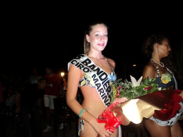 Finale Regionale di Miss Bandiera Blu, con la tappa di Cirò Marina si sono concluse le ambite selezioni. É Bina Forciniti la reginetta dell’ambita fascia premiata dal sindaco Roberto Siciliani. Al 2° posto Jessica Filippelli con il titolo di miss A.N.A.M. A consegnare la fascia è stato Antonio Russo, presidente A.N.A.M. Cariati. Al 3° Giuseppina Sprovieri. Continua, adesso, la corsa alla più bella. Verso la meta più ambiziosa. A Cariati è tutto pronto per la finale di domani Mercoledí 22 nell’area portuale, alle ore 22. La manifestazione, svoltasi ieri presso un lido sul lungomare cirotano, alla presenza della Giunta Siciliani al completo, ha attirato numerose ragazze, accorse per la competizione in omaggio al vessillo più ambito ed amato delle località costiere. E Cariati, intanto, si sta preparando alla grande manche finale. 15 saranno le finaliste provenienti rispettivamente dai paesi Bandiera Blu calabresi. Da Melissa ad Amendolara, da Roccella Ionica a Cariati a Cirò Marina.