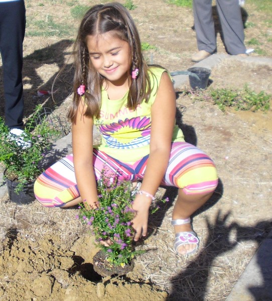 Bambina interra una piantina