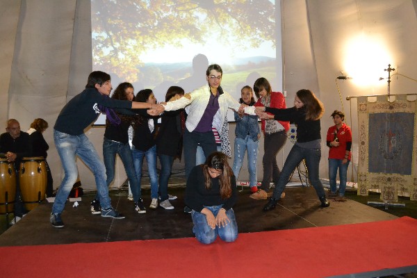Tra i presenti anche don Serafino Parise che, nonostante il temporale in corso è riuscito a raggiungere il tendone per esporci il significato di”Ascolta Israele”. I ragazzi dell’Oratorio “A. Maria Verna” hanno espresso con un balletto cosa è Dio per loro, un Dio che salva da tutte le angosce, dai vizi dai pericoli, dalle tentazioni e ti chiama a vivere in pienezza la tua vita. Alla fine don Edoardo ha ringraziato tutti i presenti che malgrado ogni intemperie hanno raggiunto il tendone per proclamare la propria fede a Dio e alla sua Chiesa. Quello di mercoledì sera è stato uno spettacolo soprattutto per questo: per la compattezza dimostrata dalla comunità parrocchiale che ha saputo essere unita anche nella tempesta. I fedeli hanno lasciato il tendone sulle note di “Credo” uno degli inni all’anno della fede adottato dalla parrocchia.