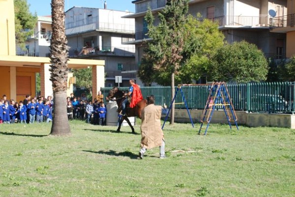 Gli alunni delle seconde classi della scuola primaria “Edificio”, che fa parte dell’Istituto comprensivo n. 1, hanno festeggiato la ricorrenza di San Martino. I loro insegnanti, Rita Maria Laganà, Tonina Bruno, Dina Guarascio, Emilia Papaianni e Luigi Russo, hanno organizzato la festa di San Martino, arricchendola delle tradizioni enogastronomiche locali. Alla manifestazione, che si è svolta nel giardino della scuola, hanno partecipato tutti i bambini e i genitori degli stessi. Le mamme hanno avuto un ruolo attivo, perché hanno preparato il ricco buffet. Prima del gran finale, gli adulti e bambini hanno assistito alla rappresentazione scenica della leggenda di San Martino. Il Santo è stato interpretato dal bravo Luigi Ferraro, che è arrivato nel giardino in sella al suo cavallo, mentre l’insegnante Luigi Russo ha recitato la parte del mendicante. Secondo la leggenda, il militare Martino tagliò in due il suo mantello per darne l’esatta metà ad un mendicante. Quella notte Martino sognò che Gesù si recava da lui e gli restituiva la metà del mantello che aveva donato. Martino si convertì al cristianesimo, morì l’8 novembre del 397 in odore di santità. San Martino, ritenuto un Santo miracoloso, si festeggia l’11 novembre, che è la data della sua sepoltura. Gli insegnanti della scuola “Edificio” hanno parlato agli alunni delle seconde classi, sezioni A-B-C-D, anche della cosiddetta “Estate di San Martino”. Le rappresentanti di classe, Pina Alfì, Rossella Garofalo, Antonella Lucente e Pina Gentile, hanno collaborato all’allestimento del buffet. Le mamme hanno portato le pitte, la sardella, le caldarroste, l’ olio e il vino novelli, tanti i dolci.