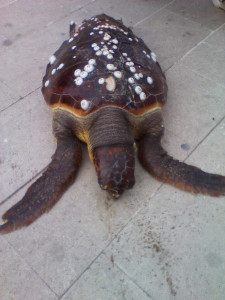 Una tartaruga marina della specie Caretta caretta, in via di estinzione, è stata ritrovata priva di vita, nel pomeriggio di ieri domenica 11 novembre 2012, era ricoperta dalla sabbia e si intravedeva solo il guscio.