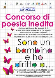 La “Convenzione Internazionale sui Diritti dell’Infanzia” del 1989 “costituisce uno strumento giuridico vincolante per gli Stati che la ratificano – come spiega l’UNICEF, obbligando gli Stati – a uniformare le norme di diritto interno a quelle della Convenzione e ad attuare tutti i provvedimenti necessari ad assistere i genitori e le istituzioni nell’adempimento dei loro obblighi nei confronti dei minori”. E infatti la Convenzione è stata ratificata da tutti i Paesi (193) con eccezione però della Somalia e, incredibilmente, degli Stati Uniti. Gli USA, infatti, visti da tutto il mondo occidentale come baluardo di libertà e democrazia, hanno firmato la Convenzione sotto la presidenza di Bill Clinton ma poi non l’hanno ratificata perché il documento “proibisce la possibilità di condannare a morte per un crimine commesso prima di compiere 18 anni” e “questo tipo di pena è ancor oggi in vigore in alcuni Stati americani”. Gli Stati Uniti, inoltre possono condannare all’ergastolo un minore, cosa vietata invece dalla Convenzione. Con la “Convenzione Internazionale sui Diritti dell’Infanzia” il bambino, infatti, “non è più minus habens, protetto per la sua immaturità, ma uomo in fieri, portatore di diritti umani fondamentali”. Per la giornata del 20 novembre, per dare slancio e sottolineare con ancora più forza, L’Associazione “Il Volo”, l’Associazione Centro D’Infanzia Baby Kinder Park, la Cooperativa sociale “I Tre Melograni”, la Fondazione Malagutti onlus di Mantova ideatrice del concorso Internazionale Diritti a Colori, la Provincia di Crotone, il Comune di Cirò, il CSV aurora di Crotone, Castelfiaba, l’Associazione D’otto, molto vicine al modo dei ragazzi, hanno voluto sensibilizzare il mondo della scuola insieme ad Istituzioni Provinciali ed Associazioni che da anni lavorano nell’universo dei bambini e degli adolescenti. Così l’idea di un concorso gratuito di poesia aperto a tutti gli “under 18″ dal titolo: “Sono un bambino e ho diritto a…”. Centinaia di poesie pervenute, da tutta la provincia. Una giuria specificatamente predisposta li giudicherà e, martedì, appunto, giorno 20, presso il centro servizi di Cirò, la premiazione e brevi interventi degli intervenuti, fra i quali lo stesso assessore della Provincia, studenti, giovani, associazioni.