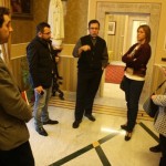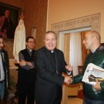 Dopo la lezione e dopo essersi cimentati nella costruzione, con scatole di cartone, di tante “camere stenopeiche”, gli studenti dell’artistico, accompagnati dai loro docenti ed insieme allo staff di Otto Torri ed ai 5 docenti spagnoli si sono diretti verso la Cattedrale, passeggiando nella Città d’arte e soffermandosi a sperimentare le loro “camere oscure” artigianali puntate sui principali monumenti del centro storico. L’intera delegazione partecipante al Simposio Internazionale è stata quindi accolta da Mons. Santo Marcianò Arcivescovo di Rossano-Cariati che si è piacevolmente intrattenuto con gli studenti e con i docenti, cogliendo l’occasione per ribadire il proprio compiacimento per le numerose attività culturali ed iniziative di qualità offerte al territorio dall’associazione europea Otto Torri sullo Jonio. Nel primo pomeriggio, su invito dell’assessore al turismo Guglielmo Caputo, la delegazione andalusa ha fatto visita al cantiere in corso per l’allestimento di Palazzo San Bernardino insieme allo staff di Riciclart coordinato da Francesca Sapia, complimentandosi con il vicesindaco Caputo per le scelte artistiche e di nuova funzionalità museale diffusa che l’Amministrazione sta dando al Chiostro ed al Palazzo, in vista della 10° edizione dell’evento Natalitia.