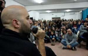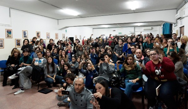 Fuggire dal passato che tornerà sempre presente. Sullo sfondo, un ambiente che Giuliano Sangiorgi conosce bene: la provincia pugliese carica di accenti mitici e ancestrali, dove sangue, sacro e droga, si confondono in un unico grido d’amore e follia. Il risultato è una storia che si bilancia tra “piano e forte”, dalla narrazione decisamente musicale. Un’atmosfera magica quella creatasi nell’Aula Magna del Liceo Classico Galluppi di Catanzaro: Corrado Fortuna ha letto, interpretandole, alcune pagine de “Lo spacciatore di carne”, accompagnato al piano da Sangiorgi. Una platea di ragazzi emozionati con gli occhi aperti alla vita e cresciuti con le poetiche parole del loro beniamino. E Giuliano non si è risparmiato: ha scherzato con il pubblico, ha concesso sorrisi, abbracci, autografi e fotoed ha regalato un favoloso fuori programma, suonando ed intonando “Meraviglioso”, il famoso brano di Domenico Modugno, ripreso dai Negramaro. Il Magna Graecia Film Festival continua a regalare emozioni e punta sui giovani che sono la freschezza della Vita. Un altro colpo nel segno per Gianvito Casadonte!