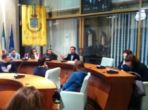 Studenti in comune. Proseguono le visite delle scuole della Città e del territorio alla bella Sala consiliare del Palazzo di Città, in Piazza SS. Anargiri nel centro storico. Stamani, mercoledì 5 dicembre, è stata la volta delle seconde classi dello storico Liceo Classico “S. Nilo”: un appuntamento inserito in un complessivo progetto con diversi percorsi di legalità. Ad accogliere i circa trenta liceali, accompagnati dai docenti Idalina Cipriani e Maria Alesina, nell’emiciclo consiliare, c’era il Presidente della massima assise civica Vincenzo Scarcello, l’assessore alla pubblica istruzione, Stella Pizzuti, ed il Segretario generale dell’ente Umberto Greco. I ragazzi hanno avuto modo di confrontarsi con i rappresentanti delle istituzioni cittadine su regole e prassi del governo democratico. E, quindi, sullo svolgimento delle attività del Consiglio comunale, massima istituzione democratica di una comunità, e sugli adempimenti che esso è chiamato ad ottemperare nel corso dei tradizionali cinque anni: dalla discussione sul bilancio del Comune ai diversi provvedimenti discussi, nel rispetto della dialettica della parti contrapposte, poi approvati dalle diverse maggioranze e finalizzati, in ultima analisi, allo sviluppo della Città. Entusiasti della visita, gli alunni del San Nilo, nelle prossime settimane, nell’ambito del progetto in corso, continueranno a confrontarsi con altre realtà ed istituzioni locali e regionali: dal Tribunale dei minori di Catanzaro agli organi della Polizia postale.
