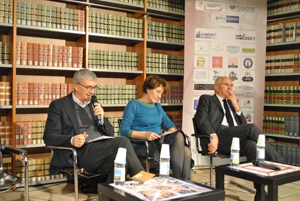 Era uno degli appuntamenti più attesi di questa prima edizione del “TropeaFestival Leggere&Scrivere” e così è stato. L’assessore alla Cultura della Regione Calabria Mario Caligiuri, Gian Arturo Ferrari presidente del Centro per la promozione del libro e delle lettura ed Antonella Agnoli, bibliotecaria di credenziali insuperabili, hanno dato vita a un dibattito moderato da Gilberto Floriani presso il complesso Santa Chiara a Vibo, splendida sede del Sistema Bibliotecario Vibonese, capofila della rassegna nonché polo di eccellenza regionale per le politiche della lettura, intorno alla promozione della stessa nell’era digitale. Caligiuri, tenendo fede a una delle intuizioni più felici del suo mandato, dopo attenta e scrupolosa ricerca, ha dato alle stampe il libro verde della lettura in Calabria, iniziativa che non ha paragoni e che si può a giusta ragione ritenere come uno dei capisaldi della sua febbrile attività culturale in accordo con le volontà del Presidente Giuseppe Scopelliti: “La lettura- ha ribadito durante l’incontro- possiede delle enormi ricadute sulla democrazia e sulla legalità del territorio, rappresentando così un antidoto formidabile alla diffusione della criminalità. La Calabria al riguardo non ha più un basso indice: abbiamo superato altre importanti regioni del sud come Puglia e Campania. Adesso l’obiettivo che ci siamo posti è quello di diventare la prima regione del meridione per indici di lettura entro il 2015.” E così questo libro verde possiede una dotta introduzione del linguista Tullio De Mauro, con altri interventi firmati da alcuni dei migliori scrittori calabresi contemporanei come Mimmo Gangemi (presente in sala) e Carmine Abate, ha come dichiarato obiettivo di aumentare il numero di lettori di libri e giornali, in modo da formare cittadini più informati, capaci di partecipare attivamente alla vita politica e democratica della regione, per costruire consapevolmente lo sviluppo economico e civile. Un programma ambizioso ma alla portata, cui verrà abbinato (fra le altre cose in itinere), un ventaglio di iniziative che possano far meglio conoscere e valorizzare il vasto patrimonio di libri antichi che la Calabria detiene, oltre alla stesura di un calendario unico per le biblioteche che possa permettere un miglior lavoro corale e di qualità.