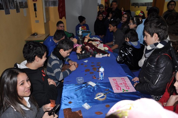 Uno scaffale ed un armadio restituiti a nuova vita, salvati dalla discarica e restaurati a dovere da piccoli artigiani; un vecchio televisore che annuncia la pace nel mondo; lampadine, vecchi DVD e stelle di carta ad addobbare l’albero dell’atrio. E la malconcia scrivania del dirigente grazie a colla, forbici e decoupage, è ora più bella con i volti dei grandi personaggi della storia. “Diventiamo grandi insieme”. È, questo, il titolo della seconda edizione Dell’open DAY organizzato nei giorni scorsi dall’istituto comprensivo di Rossano ed ospitato dalla scuola media “Leonardo Da Vinci”. I bambini delle elementari a scuola di riciclo. Ecco come si fa, ci pensano le miniguide a spiegarlo. È a queste ultime, agli alunni “più grandi” delle classi terze, che il dirigente scolastico, prof. Antonio Franco Pistoia, dopo averli salutati, ha affidato gli alunni delle classi quinte delle scuole elementari del centro storico in visita presso l’istituto di Via Martucci. Dalla scrivania del dirigente restaurata con carta di giornale e immagini di personaggi della storia e della letteratura, come Gandhi, i giudici Falcone e Borsellino e Dante Alighieri, all’innovativo presepe costruito con materiali di recupero, dai manufatti realizzati nei laboratori pratici manipolativi di mosaico, carta pesta, drammatizzazione, decorazione su vetro, sbalzo a cesello, coordinati dal prof. Isidoro Esposito.