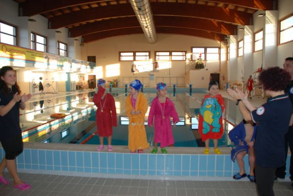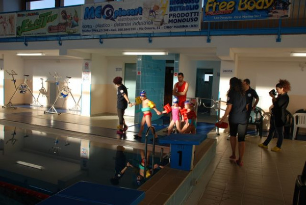 Presso la nuovissima e funzionale piscina di Cirò Marina, si è tenuta la manifestazione, che ha visto tutti i ragazzi iscritti ai corsi di nuoto, divisi per le relative fasce d’età (3/5 anni, 6/8 anni, 9/11 anni, 12/14 anni, 15/18 anni), cimentarsi nelle gare relative agli stili di nuoto appresi durante i primi tre mesi di attività. “Il tutto, hanno dichiarato, visibilmente soddisfatti, i responsabili, Francesco Varvaglione e Giuseppe Sprovieri, predisposto e stimolato dalla voglia di stare insieme ai ragazzi e, in occasione dell’imminente S. Natale, per scambiare con gli stessi gli auguri Natalizi e del nuovo imminente anno 2013.” Accompagnati dagli istruttori e dagli assistenti di vasca, i piccoli allievi, bambini e ragazzi, si sono impegnati, davanti ai propri familiari, parenti e amici, per conquistare il loro momento di “gloria” e gioia. Le gare che si sono svolte, come dicevamo, sotto gli occhi divertiti e compiaciuti di genitori e parenti, lasciando la parte agonistica che è giusto che ci sia, sono state finalizzate a stimolare la partecipazione di tutti e prepararli a quando con il nuovo anno sarà avviato all’interno dell’organizzazione anche il settore agonistico vero e proprio.