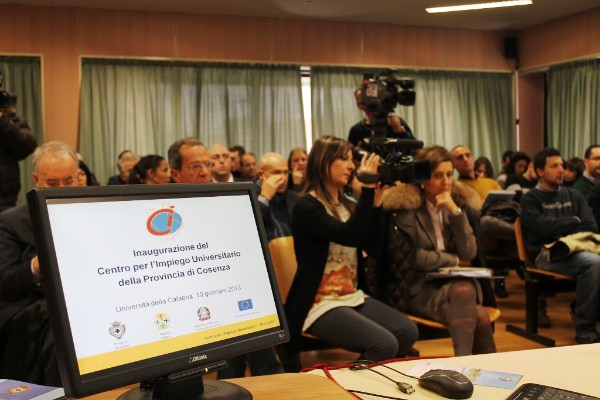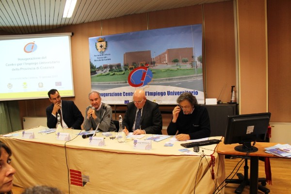 E’ stato inaugurato ieri mattina il Centro per l’Impiego Universitario. La struttura, nata grazie ad una convenzione tra l’UniCal e la Provincia di Cosenza, è stata presentata dal rettore, prof. Giovanni Latorre, dal presidente della Provincia di Cosenza, on. Gerardo Mario Oliverio, dall’assessore al Lavoro della Provincia di Cosenza, avv. Giuseppe Giudiceandrea e dal dirigente del Mercato Lavoro della Provincia di Cosenza, dr. Luigi Novellis. Il Centro per l’impiego, ubicato lungo il ponte Bucci, nelle vicinanze della segreteria studenti, svolge un duplice mission: offrire un sistema di servizi d’accoglienza e informazione che facilitino, a studenti universitari e neo laureati, l’inserimento nel mondo del lavoro ed agevolare le aziende nella ricerca di personale qualificato. Obiettivi che saranno realizzati dalla struttura grazie ad un articolato “pacchetto” di servizi che verranno erogati gratuitamente a quanti vi si rivolgeranno. Verrà, infatti, analizzato il fabbisogno dell’utente, individuate le opportunità di lavoro e supportati i disoccupati nella delicata fase che precede il collocamento. Non meno completo il servizio rivolto alle aziende che potranno conoscere eventuali incentivi disponibili per le nuove assunzioni, individuare il personale adatto alle proprie esigenze ed, addirittura, avvalersi di tirocini formativi e di orientamento. La presenza, inoltre, dello sportello della Provincia all’interno del Campus favorisce un’integrazione con i servizi d’orientamento che l’Università della Calabria già da tempo realizza. Infine il Centro per l’Impiego, che resterà aperto dal lunedì al venerdi, dalle 10 elle 12, e lunedì e giovedì dalle 15 alle 17, fa parte della rete Eurodesk, Eures, due circuiti che offrono informazioni e assistenza per il collocamento nel mercato del lavoro europeo.