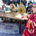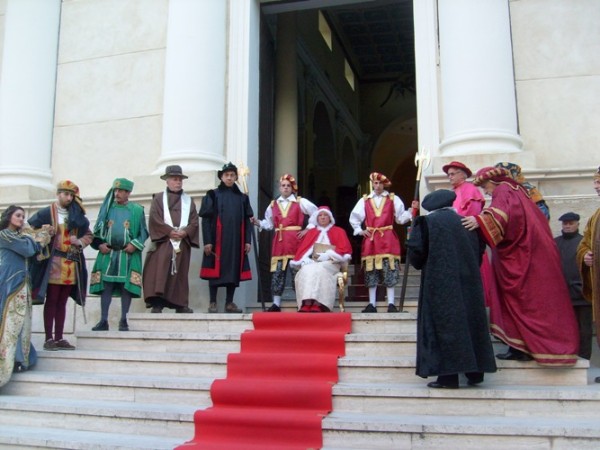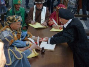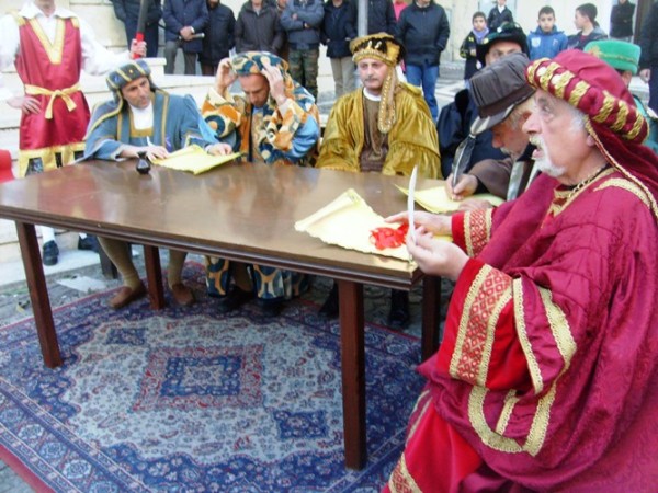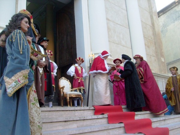 Magnifica rappresentazione storica in abiti d’epoca della tavola della Biccherna di Siena dove è rappresentato la scena della commissione del calendario mentre Antonio Lilio spiega il nuovo calendario al Papa Gregorio 13° del 1582. Un corteo di figuranti in occasione della prima giornata regionale dedicata a Lilio, ha sfilato per la via principale di Cirò fino ad arrivare nella centralissima Piazza Pugliese, nel cuore del centro storico, dove è stata inscenata la rappresentazione storica. Momenti di emozione hanno sottolineato la storia che si ripete dopo 500 anni, alle nuove generazioni affinché tutti conoscono l’opera grande dei fratelli Lilio, che con la loro riforma hanno scandito il tempo in tutto il mondo. “Fate conoscere ai vostri figli la figura di Lilio e della sua riforma, affinché domani, dovunque voi siate potete dire con orgoglio- io sono di Cirò, la città di Lilio- è quanto ha affermato il sindaco Mario Caruso al termine della rappresentazione.