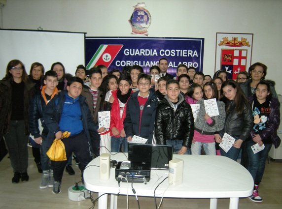 Continuano anche durante l’anno scolastico 2012/2013 gli appuntamenti della Guardia Costiera con gli studenti delle scuole medie elementari, medie inferiori e superiori dello jonio cosentino per lezioni di educazione civica del mare. La sicurezza in mare e la tutela dell’ambiente marino costituiscono, infatti, due obiettivi che da sempre il Corpo delle Capitanerie di porto – Guardia costiera persegue con grande impegno ed efficacia; anche quest’anno gli uomini e le donne diretti dal Capitano di Fregata (CP) Antonio D’AMORE sono impegnati in un’attività di comunicazione che ha come destinatarie le giovani generazioni. Dopo gli incontri presso i plessi scolastici con gli studenti dei licei classico “Colosimo” e scientifico “Bruno” nonché dell’IPSIA “Nicholas Green” di Corigliano Calabro, del 1° istituto comprensivo di Castrovillari, è una scolaresca a recarsi in Capitaneria nell’ambito di un progetto per l’educazione ambientale.