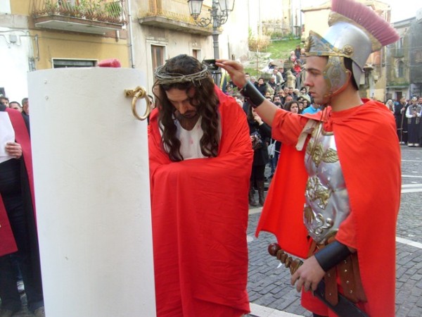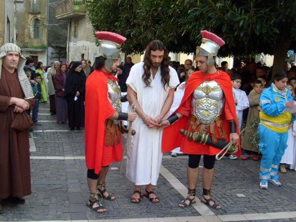 Una splendida passione di Cristo in costume d’epoca quella appena trascorsa organizzata dal parroco don Giovanni Napolitano e dalla Misericordia in collaborazione con il comune di Cirò, una delle più belle e partecipata degli ultimi anni. C’era tutta Cirò ma anche dei paesi limitrofi a quella che è diventato l’appuntamento storico religioso dell’anno. Anche il sindaco ha riferito che inserirà nelle manifestazioni storiche del paese anche la passione in abiti d’epoca. Una organizzazione quest’anno curata nei minimi particolare grazie al parroco Don Giovanni Napolitano e alla Misericordia si Cirò. Dino Sollai ha interpretato magistralmente Gesù, portando la croce per le vie dell’antico borgo in una atmosfera suggestiva, infine la crocifissione, in una gremita piazza Pugliese in un religioso silenzio, si è conclusa. Questi i personaggi che hanno interpretato la passione di Cristo: Gesù: Dino Sollai; Ladroni: Pasquale Capalbo, Vincenzo Stasi; Apostoli: Giuseppe Naccari, Antonio Bombardiere, Andrea Cidone, Luigi Aggiorno, Luigi Malena, Francesco Malena, Nicodemo Blefari, Alfredo Longobucco, Vincenzo Secreto, Giuseppe De Pasquale, Davide Critelli.Tre Marie: Lina Tassone, Miriana Rizzo, Rossella Santoro. Pie Donne; Rosetta Funaro, Franca Paone, Carmelina Errico, Emilia Errico, Tiziana Filippelli. La veronica: Francesca De Fine. Pie della veronica: Lucia Vasamì, Finisia Grillo. Pilato: Lillo Stasi Moglie Pilato: Antonella Sestito. Ancelle Pilato: Giusy Rizzo, Vittoria Arcovio. Dame moglie Pilato: Mariangela Bruno, Maria Chiara Paletta SPQR: Gaetano Morelli, Francesco Vasamì. Erode: Gianni Stasi; Erodiade: Maria Lettieri; Dame erodiade: Maria Chiara Cidone, Elisa Capalbo. Centurione: Ernesto Zumpano. Palio del lutto: Alfonso Morelli;Barabba Gianluca Arcuri. Giuda: Salvatore Naccari; Cireneo: Giuseppe Spataro.