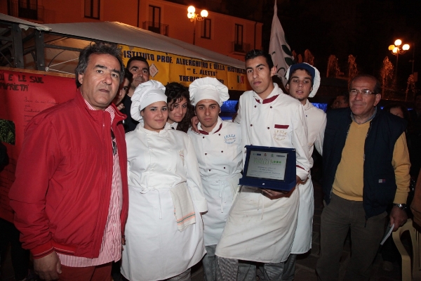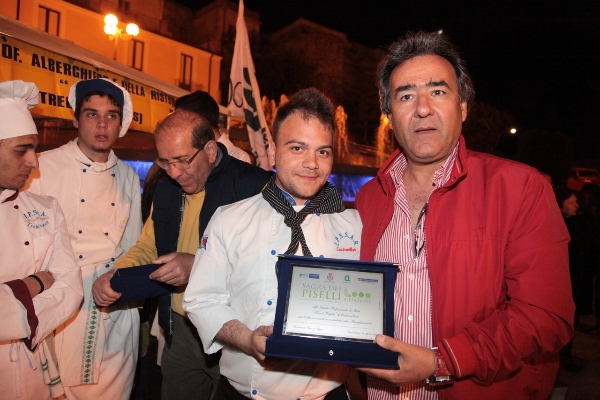 Tra la folla, salutati dal Sindaco Antonio Ciminelli, anche il Prof. Paolo Corvo, docente di sociologia del turismo presso l’università di Scienze Gastronomiche di Pollenzo Bra, in provincia di Cuneo, con il dott. Marco Boschetti, Direttore Consorzio Agrituristico Mantovano, in Calabria per il primo Forum regionale su Turismi e Identità ospitato, nella stessa mattina, dalla Città di Rossano. Risotto, piselli e seppie al profumo di aneto. È il piatto che ha fatto aggiudicare all’istituto alberghiero di Castrovillari la sfida, sulla falsa riga del format televisivo “Master Chef”, contro i giovani colleghi di Trebisacce. A premiare i promettenti cuochi anche il neo Presidente dell’associazione Otto Torri sullo Jonio Stanislao Smurra, reduce, insieme ai soci ed organizzatori dell’evento rossanese. I ragazzi delle scuole medie sono stati premiati dal Sindaco, da Annamaria Cetera, funzionaria provinciale del CONI. La giuria era composta, inoltre, da Parisio Camodeca, direttore Provinciale Confagricoltura, dal Preside Grispo di Trebisacce, da Vito Natella pediatra pugliese e da Laura Ferraro del comitato nazionale sagre. La Sagra dei Piselli – ha detto il Sindaco salutando osservatori, turisti e residenti – è il risultato della sinergia tra istituzioni, produttori e volontari, che credono e lavorano insieme ad un progetto comune: promuovere attraverso le produzioni tipiche il territorio. Insieme, propagatori di identità e tradizioni.