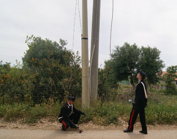 Insospettiti dall’orario e dall’assenza di motivi che giustificassero la presenza del 25enne in quel luogo, i Carabinieri procedevano a perquisire il veicolo rinvenendo una mazzola in ferro, uno scalpello ed una tenaglia in ferro. I militari, successivamente, scorgevano un cavo elettrico penzolare dalla palificazione e subito dopo rinvenivano occultato a bordo strada e mimetizzato tra la vegetazione un cavo elettrico della lunghezza di 21 metri che il Nicastro aveva precedentemente tranciato e nascosto in attesa di poterlo recuperare probabilmente al termine del lavoro di taglio dei successivi tronconi di cavo. Il Nicastro, su disposizione dell‘Autorità Giudiziaria, è stato immediatamente tradotto presso la propria abitazione agli arresti domiciliari in attesa del Giudizio Direttissimo.