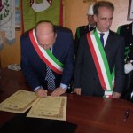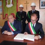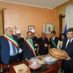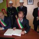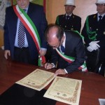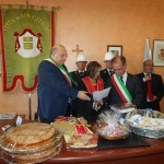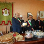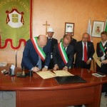 Le massime autorità del Comune di San Cataldo, in Sicilia, hanno sancito, con una articolata cerimonia significativa e ricca di simbologie cristiane e civili, il loro gemellaggio con il Comune di Cirò Marina. Mercoledì 8 maggio, ricevuti dal Sindaco, Roberto Siciliani e da alcuni componenti la giunta, fra i quali l’assessore alla cultura, Sergio Ferrari, presso la sala dello stesso primo cittadino, Francesco Raimondi, sindaco di San Cataldo, accompagnato per l’occasione dal presidente del Consiglio della stessa città siciliana, Cristofaro Amico, dall’assessore alla cultura, Giuseppe Ansalone e dal corpo della polizia Municipale con in testa lo stesso comandante, hanno dato vita allo scambio dei gonfaloni e al rituale protocollo che, una volta sottoscritto, ha di fatto sancito il legame fra queste due comunità, entrambi devote al Santo patrono, San Cataldo Vescovo. Una fede e un amore per questo Santo che da pochi giorni lega non solo Cirò Marina con San Cataldo, ma anche con Supino, gemellaggio avvenuto nel 2007 e che rafforza e conferma l’amore e la fede per San Cataldo, quale valore irrinunciabile. Dopo le reciproche parole di ringraziamento e solidale affermazione verso il raggiungimento di più larghe e coinvolgenti manifestazioni di scambi culturali, storici e religiosi, le due comunità si sono strette più significativamente intorno ai valori di fede che questo santo rappresenta. A testimoniare questi valori, il decano della chiesa locale, Mons. Antonino Terminelli, don Gianni Filippelli, parroco della parrocchia di San Cataldo e l’artefice di questo gemellaggio, Caterina Amodeo. Con una cerimonia nella cerimonia infatti, la stessa nostra concittadina, è stata nominata dal presidente della confraternita di San Cataldo, socio onorario dello stesso comitato siculo, delegandola a rappresentare la confraternita sia presso la comunità di Cirò Marina che di Supino consegnandole, la stola della congregazione, poi consegnata anche formalmente al Sindaco, Roberto Siciliani e a don Gianni Filippelli.