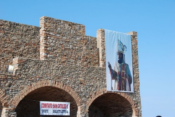 Lo scambio poi dei simboli tradizionali delle due comunità. Da parte della delegazione siciliana: il pane di San Cataldo che in occasione della festa viene distribuito a tutti e che simboleggia l’abbondanza, un dolce tipico e l’abito della congregazione. Da parte del comitato di Cirò Marina, le tradizionali “zagarelle” per la protezione, i “vestitini” di San Cataldo, per la fede, i “cuddureddi”, dolce tipico. Cultura, fede, tradizione, turismo, gastronomia, tutti elementi che hanno fatto parte dei messaggi di unione e gemellaggio, lanciati dai due primi cittadini. Poi, la Santa Messa che ha preceduto il sempre suggestivo giro del santo, sulla barca a mare, seguito da migliaia di fedeli, prima che la processione portasse il Santo a Madonna di Mare, dove all’indomani si è svolta la tradizionale “agape”. Poi il rientro nella chiesa Madre in piazza Diaz, la devota e seguitissima processione in paese e nella serata prima dei fuochi d’artificio finali, il concerto dei Cugini di Campagna. Non è mancato, durante la visita della delegazione di San Cataldo, la visita alla mostra allestita da Alfonso Calabretta, dei vestitini di San Cataldo. Mostra che ha molto colpito l’assessore alla cultura di San Cataldo, tanto da fargli affermare e promettere sin d’ora che in occasione della loro Novena, il prossimo anno, sicuramente, organizzerà un pulman di fedeli che verrà nella nostra città per visitare la mostra e allargare lo spirito stesso del gemellaggio. La riffa, le coloratissime “zagarelle”, i gruppi musicali, il giro per le bancarelle, nonostante la crisi, e i fuochi pirotecnici dopo la mezzanotte, come abbiamo già detto, hanno chiuso questi festeggiamenti del santo Patrono, restituendo ai fedeli una rinnovata fede e alla città, una festa, ritrovata nella sua essenza spirituale e nella sua voglia di comunione e comunicazione.