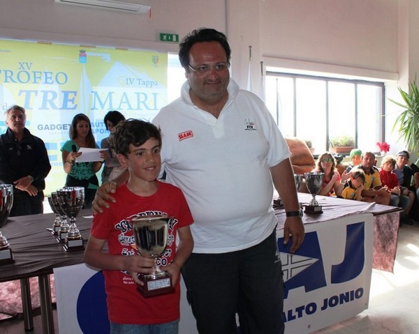 “Sono contentissimo – ha detto il campione, tradendo un po’ di emozione – già dalla terza tappa avevo capito che il Trofeo poteva essere mio, perché avevo un distacco notevole dagli altri. Sono felicissimo e spero di continuare sempre meglio”. Grande soddisfazione per l’importante risultato è stato espresso dal presidente della Lega navale di Crotone, Giovanni Pugliese, e da tutto il direttivo. Un’affermazione, quella di Milano, che premia sforzi e sacrifici di tutto il gruppo vela della Lega navale di Crotone, e in particolare degli Optimist guidati dal coach, Massimo Racco, che con la sua esperienza decennale contribuisce a far crescere il vivaio di questi piccoli campioni. Oltre a Milano, all’ultima tappa del Trofeo dei Tre mari, la flotta della Lega navale di Crotone era composta da Irene Funtò, che ha gareggiato sempre nei cadetti. Tra gli juniores, invece, sono scesi in acqua Giuseppe Congi, Nicolò Bellassai e Lorenzo Ruperto, i quali, nonostante non avessero interessi di classifica, hanno onorato il loro impegno di partecipazione al Trofeo, anche per condividere il successo e la gioia del loro compagno di squadra. Oltre al premio per il primo classificato dei cadetti, Andrea ha avuto il merito di portare a Crotone il Trofeo Challenger, un quadro d’argento con un delfino realizzato dal maestro orafo Gerardo Sacco per la I edizione del Tre Mari, 15 anni fa. Alla Lega Navale di Crotone, circolo di appartenenza di Andrea, è andato un altro Trofeo, un grosso “nodo savoia” in metallo montato su base di plexiglas, ritirato da Gianni Liotti, segretario della sezione crotonese della LNI.