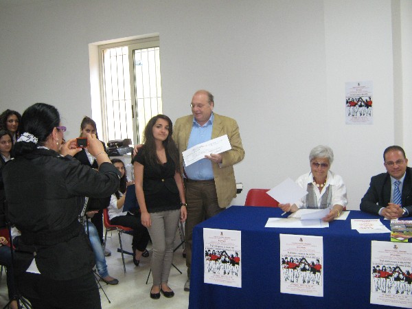 Commissione Pari Opportunita' incontra gli studenti a Cirò (2)Moderato da, Nelly Brisinda, l’incontro ha dimostrato particolare attenzione e gradimento da parte dei ragazzi, presenti nonostante i numerosi impegni scolastici e le difficoltà dovute allo sciopero dei mezzi pubblici. Giovani che si sono impegnati in una intensa rappresentazione, applaudita dai presenti, che ha trasporto nella sala dell’incontro le figure di Falcone e Borsellino. A completamento della trattazione hanno trovato corollario gli interventi della vice presidente della Commissione Pari Opportunità, Pina Malena, che ha voluto sottolineare come “Fin dall’inizio del nostro cammino abbiamo promosso numerose iniziative mirate soprattutto al coinvolgimento dei giovani con l’obiettivo di far loro comprendere ed avvicinarli alla vita politica e istituzionale, in una cornice più generale di crescita civica e culturale. Con il mondo scolastico, ha proseguito, è possibile costruire preziosi percorsi di partecipazione affinché sempre più giovani si sentano interessati alla vita delle istituzioni.” La prof.ssa Filomena Caruso nel corso della manifestazione ha proposto uno stacco teatrale tratto dall’opera “Ah, che mondo sognavamo!” di Egidio Romano, magistralmente rappresentato da alcuni ragazzi del Liceo. La presenza dei rappresentanti del Presidio di “Libera” prof.ssa Concetta Mazziotti e Lucrezia Basile, l’Inno Nazionale in apertura della Cerimonia, e l’accenno al “Silenzio” per ricordare tutte le vittime di mafia, ad opera della Banda musicale del Liceo diretta dal prof. Greco e l’intervento della Dirigente Scolastica dott.ssa B. Giudice sono stati momenti che hanno fatto da corollario alla manifestazione. Una manifestazione che negli intenti della Commissione Pari Opportunità, ha voluto dare voce ai giovani e ai loro bisogni, coinvolgendoli nella ricerca di soluzioni condivise per fare del nostro territorio un territorio migliore, in linea con le esigenze di cui gli stessi giovani si fanno portatori. “Le idee migliori sono proprietà di tutti” diceva infatti Seneca. L’Assessore alla P.I. del Comune di Cirò Marina, ing. Francesco Ferrara, a conclusione della manifestazione, ha consegnato il Premio alla vincitrice, la liceale, Marianna Gualtieri.