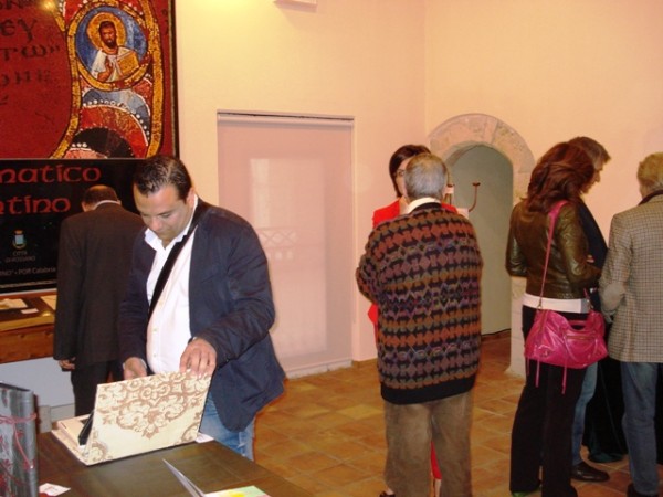 Mostra Libro d'Arstista a Rossano (5)Turismo più cultura, si conferma, questo, il binomio vincente sul quale l’esecutivo Antoniotti intende continuare a consolidare il rilancio complessivo dell’immagine di Rossano nel territorio ed in Calabria. Nei giorni scorsi, in occasione di due importanti iniziative, turistiche e culturali, uno promosso dall’Università popolare e l’altro dalla Biblioteca Minnicelli, entrambi patrocinati dall’amministrazione comunale, gli assessori Caputo e Pizzuti hanno avuto modo di ribadire obiettivi e metodi di lavoro della Giunta. Continuare a promuovere Rossano Città d’arte resta la sfida ambiziosa ed entusiasmante sulla quale coagulare e rafforzare consensi e sinergie. Il recente, importante seminario “Le grotte monastiche di Rossano, fra tradizione e storia”, finalizzato a far conoscere e valorizzare la rete diffusa degli antichi eremi rossanesi, prezioso patrimonio architettonico, è stato organizzato dall’Università Popolare Ida Montalti Sapia, diretta dal preside Giovanni Sapia, assente per seri motivi di salute. A questo intellettuale di elevata caratura, apprezzato e stimato ovunque anche fuori dalla nostra regione, è stato rivolto l’augurio di pronta guarigione da parte dell’assessore Caputo e del Sindaco Giuseppe Antoniotti, affinché possa continuare a offrire il suo prestigioso e prezioso contributo alla crescita culturale della nostra comunità e del territorio. Le grotte monastiche – è intervenuto Caputo – a partire da quella di S. Maria delle Grazie, messa a disposizione dei cittadini grazie alla generosità del preside Gennaro Mercogliano e della sua famiglia, che ringrazio, sono parte fondamentale del patrimonio identitario rossanese sul quale noi intendiamo puntare.