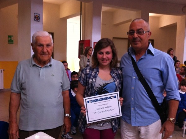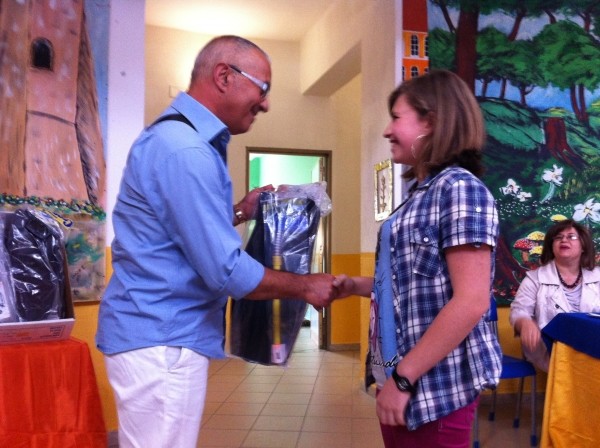 Vengono anche consegnati gli attestati ai 3 premiati; in contemporanea vengono scattate una serie di fotografie a ricordo dell’avvenimento. Ad ogni consegna, congratulazioni, abbracci, applausi, ovazioni; i ragazzi sono festosi e rumoreggiano, anche quelli che non hanno vinto sono gioiosi per i loro compagni. Una bella festa che ha soddisfatto gli