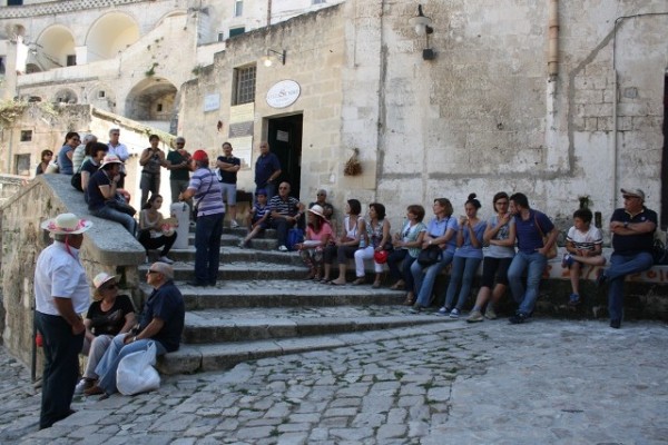 Avis Cariati a Matera (6)Si tratta di un’iniziativa di recupero e ri-destinazione ricettiva promossa, in particolare, dall’imprenditore italo-svedese Daniele Khilgren, in alcuni borghi storici italiani (il modello di riferimento è in Abruzzo a Santo Stefano di Sessanio) con un inedito approccio conservativo verso un patrimonio minore solitamente compromesso. Un “paese albergo”, nel senso stretto del termine, che colloca sale per la colazione, stanze e reception in punti diversi del centro, tra le abitazioni storiche. Il fascino profondo di tanti borghi del Sud Italia pregni di storia, in uno straordinario rapporto col paesaggio, la permanenza residuale di culture materiali autoctone, ne fanno di fatto uno dei territori di elezione a poter rispondere alla domanda sempre più evasa di un turismo estremamente articolato da sempre legato non solo ai monumenti della classicità, ma ad una civiltà ed ad un territorio pregno di sensazioni ed emozioni, sapori e profumi altrove profondamente violati e che alcuni borghi storici montani del nostro meridione sono riusciti a conservare. L’investimento ed esperimento di Khilgren nei sassi materani – chiosa Montesanto – rappresenta un originalissimo esempio di riqualificazione e rivitalizzazione in chiave turistica oltre che di riappropriazione della propria storia e delle proprie origini. Un caso da studiare, che meritava di essere visitato e che dovrebbe essere imitato in tanti borghi del Mezzogiorno e della Calabria. Dopo i Sassi di Matera, la carovana dei soci, attivi e “in pensione”, dell’AVIS di Cariati, di ritorno in Calabria, guidati dal Presidente Montesanto, ha fatto tappa al sito archeologico di Metaponto, nel comune di Bernalda, dove è presente il tempio, quasi intatto, dedicato ad Hera.