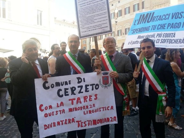 Il Deputato del Pd Ernesto Magorno, ha aderito e partecipato alla manifestazione che si è svolta ieri mattina davanti a Palazzo Montecitorio, guidata dal Sindaco di Acquaformosa, Giovanni Manoccio. L’iniziativa che ha visto la partecipazione di vari sindaci calabresi, è stata organizzata per dire no alla Tares e per attirare l’attenzione sulle gravi problematiche finanziarie che, a seguito delle politiche restrittive degli ultimi anni, vivono i comuni ed in particolar modo quelli più piccoli. La protesta, come detto, è scaturita dalla clamorosa iniziativa del Sindaco Manoccio, che provocatoriamente ha fatto affiggere nel suo comune un manifesto a lutto nel quale c’era scritto “Il Comune è morto all’età di 510 anni per assassinio premeditato. Ieri mattina, oltre al Primo Cittadino di Acquaformosa, erano presenti a Roma, i Sindaci di San Basile, Vincenzo Tamburi; Cerzeto, Giuseppe Rizzo; Santa Caterina Albanese, Roberto Lavalle. Hanno aderito e partecipato, inoltre diversi comuni dello Jonio e del Tirreno cosentino, da questi: San Sosti, Sant’Agata, Frascineto, Civita, Firmo, Tarsia.