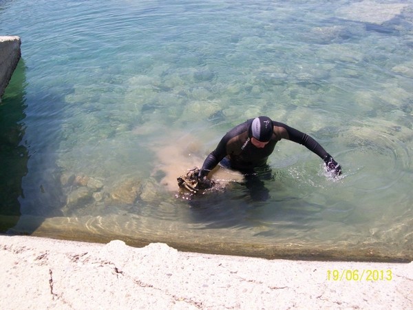 Sacchi sigillati nel fondale del porto di Ciro' Marina (5)Il neo Laboratorio Verde di “Fare Ambiente” di Cirò Marina, nella giornata di mercoledì 19 giugno, è stato particolarmente impegnato sul territorio con delle operazioni di bonifica programmate. La mattina le Guardie Ecozoofile in cooperazione con le guardie di Federcaccia, hanno effettuato un’ispezione su alcuni sacchi sigillati e depositati nel fondale del porto di Cirò Marina, in prossimità della banchina esterna. I sacchi sono stati prelevati con l’aiuto di un sommozzatore e aperti. Contenevano sostanze fangose, apparentemente innocue, ma che per sicurezza sono state comunque campionate e inviati ai laboratori per tutte le analisi di rito. Grazie al tempestivo supporto della Capitaneria di porto locale l’area è stata bonificata.