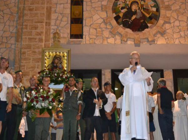La sacra Icona fu subito oggetto di venerazione e da allora ogni lunedì successivo alla prima domenica di maggio viene portata in processione dal Duomo del capoluogo al promontorio alla sua sede originaria e viceversa. Tale pellegrinaggio vuole ricordare quello guidato da san Luca di Melicuccà ( primo vescovo di Isola nato nel 1092 e morto nel 1114) allorché tutta la popolazione si mosse per invocare la fine di un lungo periodo di siccità. Oggi la tela della Madonna Greca è custodita all’interno di un’artistica cappella dell’antico Duomo che fu sede vescovile di iniziale rito greco fino al 1818, anno in cui fu soppressa e accorpata all’allora Diocesi di Crotone. Oltre alla festa annuale che si protrae per l’intero mese mariano, alla Madonna Greca vengono tributati solenni festeggiamenti ogni sette anni, anno sabbatico o giubilare. Altri festeggiamenti vengono celebrati anche nei primi giorni del mese di agosto, allorquando la sacra immagine viene portata via mare nelle varie frazioni marinare del territorio isolano. Così da ieri giovedì 1 agosto ha preso avvio l’annuale “Festa della Madonna Greca sul mare” col pellegrinaggio da piazza Duomo del centro capoluogo di Isola Capo Rizzuto fino alla frazione marinara di Marinella per poi essere portata, oggi, all’altra frazione di Le Cannella. Da qui, domenica 4 agosto, via mare raggiungerà la rinomata località turistica di Le Castella dove sarà accolta da uno spettacolo pirotecnico. A Le Castella la Madonna sosterrà fino al giorno dopo quando, sempre via mare, tornerà a Capo Rizzuto nel nuovo santuario dedicato, appunto, alla Madonna Greca. Si tratta di un imponente edificio polivalente, la cui prima pietra fu posta nel 1990 e definitivamente consacrato nella primavera del 1997; è un tempio bello e maestoso progettato dall’architetto G. Asteriti e dagli ingg. F. Nicotera e A. Cavarretta.