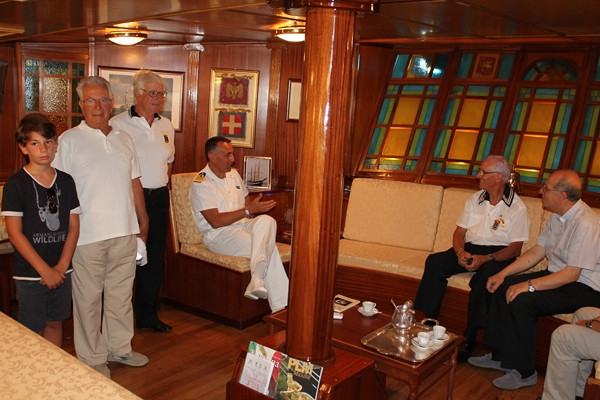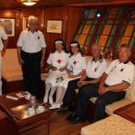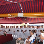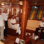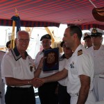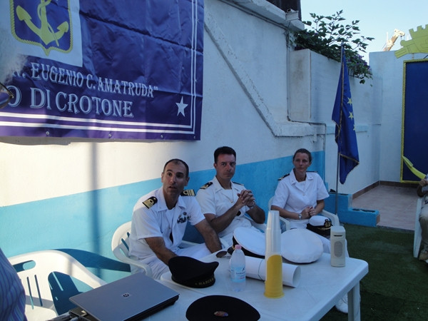 E’ seguito il rituale scambio dei crest. Quello del Gruppo ANMI di Crotone, come ha spiegato il suo Presidente, riproduce, insieme all’ancora, il triangolo pitagorico e la superstite colonna dorica del tempio di Hera Lacinia, entrambi simboli del fiorente passato magno-greco della città. Nel pomeriggio il Comandante Panarello, due Ufficiali di bordo e gli allievi Marescialli hanno fatto visita alla Sede del Gruppo. Qui alcuni dei Soci hanno raccontato la loro esperienza durante il servizio militare, svolto in Marina oltre 40 anni fa, suscitando grande interesse tra gli allievi. Zito si è rivolto loro esortandoli ad essere vicini all’ANMI e ad iscriversi all’Associazione perché un domani possano degnamente sostituire i Soci anziani. Gli allievi hanno voluto ringraziare il Gruppo crotonese per l’ospitalità e la collaborazione data nei giorni di permanenza a Crotone regalando il loro crest e un’immagine del “Palinuro”, con una sentita dedica e tutte le loro firme. Il Comandante Panarello, da parte sua, ha consegnato una foto della Nave con dedica di ringraziamento a tutti i Soci del Gruppo. Un brindisi di festeggiamento ha accompagnato i saluti di rito all’insegna di una giornata indimenticabile.