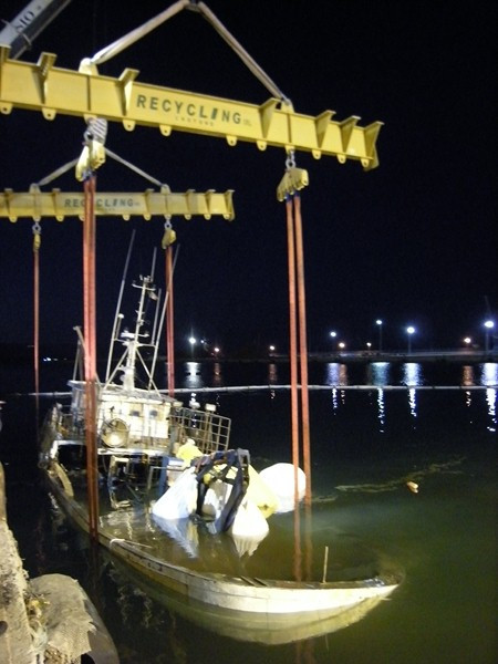 Proseguono anche oggi, coordinate dal Capo del Compartimento marittimo, Capitano di Fregata (CP) Antonio D’Amore, le operazioni di recupero del motopesca affondato mentre era attraccato alla banchina del porto di Corigliano Calabro nella serata di martedì 10. Negli ultimi due giorni, infatti, grazie all’impiego di palloni, posizionati prima a prua e poi a poppa da sommozzatori specializzati, l’unità è stata prima lentamente riportata in galleggiamento dal fondale di 12 metri dove era affondata e poi, tramite fasce collegate a due grosse gru, è stata messa in sospensione. Così si sono rese possibili ulteriori attività di bonifica dall’inquinamento, di recupero dei liquidi ancora presenti a bordo, di alleggerimento del carico totale per facilitare il lavoro di sollevamento dei notevoli pesi in gioco (circa 200 tonnellate). In giornata continueranno le operazioni e sarà verificato se è possibile in totale sicurezza per gli operatori poter completare il tiro a secco del peschereccio e il deposito dello stesso a terra.