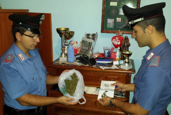 Infine, in un’altra camera da letto adiacente a quella in uso al Salerno, all’interno di una valigia riposta sotto il letto, i Carabinieri hanno scoperto un involucro in cellophane bianco, contenente marijuana, pari ad altri 40,00 grammi di peso. In totale i Carabinieri hanno recuperato 42 grammi di marijuana pronta per essere immessa sul mercato oltre alla banconota falsa. Il Salerno, espletate le formalità di rito, su disposizione dell’Autorità Giudiziaria, è stato trattenuto presso gli uffici della Stazione dei Carabinieri in attesa del giudizio direttissimo previsto per la stessa mattinata di oggi.