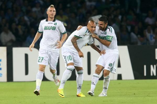 ZazaSi ferma la marcia del Napoli: il Sassuolo di Eusebio Di Francesco grazie ad una splendida rete di Zaza riesce a raccogliere il primo punto della stagione. Rafa Benitez sceglie di tenere a riposo Callejon e Insigne per far spazio a Mertens e Pandev, in difesa tornano titolari Fernandez e Cannavaro, ma tutto va nel verso sbagliato e i neroverdi strappano un punto che vale oro.
