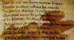 Trovo, quello che ne rimane dell’esordio del ‘Poema de mio Cid’, di una vastità illimitata, un compendio di storia – e anche di storie personali – mirabilmente condensato in poche righe, righe che vanno lette, sentite, intese, interpretate… o, diversamente, accolte anche per semplice diletto, per l’immagine – ma anche il ricordo – di certi suoni e consonanze. E’ qui che l’uomo si stacca icasticamente sul deserto che gli è stato fatto intorno… l’esilio e l’isolamento contro i quali dovrà essere più forte. Molta storia d’Europa passa per questo incipit. Molta storia di parte dell’Italia è qui significata: è l’anima mediterranea, federiciana, quella che risale dalle sabbie di Akragas, sguscia alla presa di Scilla e Cariddi e avvolge tutto il sud dello Stivale, e ovunque riappare, come riappaiono voci e inflessioni che un orecchio attento non fatica ad associare tra di loro, come affiorano facce straordinariamente simili le une alle altre dalle sponde più o meno vicine od opposte di questa nostra matrice acquea… è il Mediterraneo, arabo, ispanico, magnogreco… il mare di Jogale, Giufà, Nasreddin… ma anche il mare dei più fini pensatori, che non oso neppure provare ad elencare…Vabbè, fisserìj…Lo spagnolo (il castigliano) del XII secolo era molto più vicino al volgare italiano coevo di quanto non lo siano oggi le due lingue, ‘spagnolo’ e ‘italiano’. Anche questo è un segno di quella forte coesione ‘latina’ che fa spesso dire ‘una faccia, una razza’…