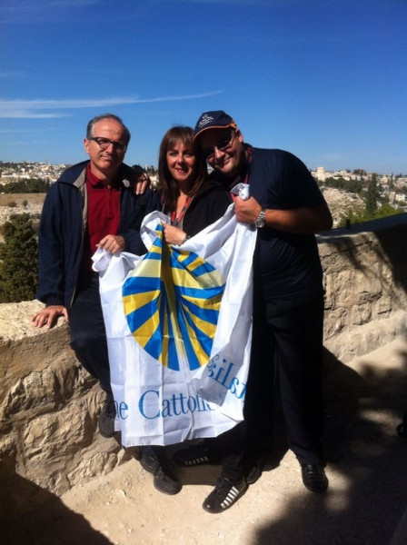 Attraverso testimonianze bibliche, evangeliche, archeologiche, letterarie e dei primi pellegrini, dalla ben nota Egeria a San Girolamo, ci ha magistralmente addentrati al contatto diretto con gli “Ambienti” che hanno conosciuto gli interventi di Dio e nei quali la Parola ha preso corpo. Grazie al Suo prezioso contributo è stato possibile percepire l’atmosfera dei vari Luoghi, ricevere l’eco della loro storia, entrare nella migliore comprensione del messaggio in essi custodito. L’itinerario fisico ha seguito quello spirituale. Sotto quest’aspetto, decisivo l’impegno di don Fortunato Morrone, che non ha certo bisogno di molte presentazioni. Basti ricordare che è docente di Teologia Sistematica, presso l’Istituto Teologico Calabro e l’ISSR Apollinare della Pontificia Università della Santa Croce, nonché assistente unitario dell’Azione Cattolica di Calabria. In quanto tale, ci ha guidati in un vero e proprio “cammino dell’anima” che non ha lasciato nessuno indifferente. Con sapiente discernimento ha saputo parlare al cuore di ognuno. Parole semplici, accessibili a tutti, mai banali, ordite sul canovaccio dei passi evangelici, letti, meditati e riflettuti in ogni Luogo Santo visitato. Cristallizzate dalle Liturgie rivissute nei Luoghi in cui la Rivelazione si è manifestata e sviluppata. In verità, lo stile profondo illuminante delle Guide, l’approfondimento biblico, la riflessione teologica, hanno conquistato e coinvolto i pellegrini, aderenti e non dell’ AC. Debbo confessare che senza queste determinanti collaborazioni non sarebbe stato possibile entrare insieme nella straordinaria ricchezza spirituale custodita in questi “Luoghi” e che nel pellegrinaggio è diventata tesoro di personale profonda esperienza di Dio. Altro motivo di riuscita di questo percorso, ricco di momenti intensi, l’accompagnamento di don Massimiliano Assisi, assistente diocesano dell’Azione Cattolica. Il quale ha curato amorevolmente lo spirito del pellegrinaggio, animato il gruppo con la sua giovanile esuberante personalità, così schietta, semplice, immediata da lasciare un segno profondo nel nostro cuore. Di tutto ciò vogliamo esprimere gratitudine al Signore e sentito apprezzamento alle nostre Guide, ringraziandoli di cuore per averci accompagnato alle sorgenti della nostra fede, nella” Terra” scelta da Dio come Sua dimora, Luogo privilegiato del Suo incontro con l’uomo. Al termine di questo itinerario, personale, associativo e comunitario, nel quale abbiamo goduto della grazia particolare che i Luoghi Santi emanano, ciò che abbiamo riportato come Azione Cattolica è ancora un frutto che deve maturare e non bastano certamente i quindici giorni attesi per iniziare a raccontare “delle cose che abbiamo vedute, ed udite” (Atti 4,20). Intanto il seme è stato gettato. Guardando al futuro del nostro cammino associativo «il nostro cuore si volge ora a quella Terra in cui si è compiuto il mistero della nostra redenzione» (Verbum Domini 89). Con le parole del Beato Giovanni Paolo II possiamo dire: “O luogo, luogo di Terra Santa, quale spazio occupi in me! Perciò non posso calpestarti con i miei passi, debbo inginocchiarmi. E così attestare oggi che tu sei stato un luogo d’incontro. Io m’inginocchio, e metto così il mio sigillo. Resterai qui col mio sigillo – resterai, resterai – e io ti porterò con me, ti trasformerò dentro di me in un luogo di nuova testimonianza”. (K. WOJTYLA, Opere letterarie. Poesie e drammi, Libreria Editrice Vaticana 1993, p. 124).”