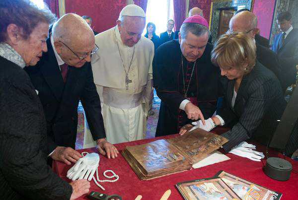 E’ per queste motivazioni, corroborate da oltre 15 anni di intensa attività e progettualità territoriale finalizzate a rivalutare, promuovere ed offrire ciò che i nostri centri storici custodiscono di più inimitabile, come il Codex Purpureus Rossanensis, che rivolgiamo anche pubblicamente, a Mons. Santo Marcianò, Ordinario Militare per l’Italia, il nostro ringraziamento per questa iniziativa storica, importantissima e che ci auguriamo possa significare un punto simbolico di non ritorno, per tanti e da molti punti di vista. All’Arcivescovo Marcianò, che dal 2006 ha guidato con intelligenza e notevoli capacità spirituali, umane e relazionali la Diocesi di Rossano-Cariati, e con il quale Otto Torri sullo Jonio ha costruito e preservato negli anni un prezioso e qualificante rapporto di collaborazione e dialogo costanti, diciamo Grazie per aver dimostrato, ancora una volta, che è soltanto nella consapevolezza della propria identità storica e dei propri tesori che una Città può veramente ambire ad accrescere il suo peso, anche e soprattutto in termini turistici. Le immagini del Codex Purpureus illustrato da Mons. Marcianò a Papa Francesco ed al Presidente Napolitano, nonché l’indicazione continuata, nei commenti di sottofondo, di Rossano quale Città calabrese di provenienza del Codex, trasmesse stamani in diretta su diverse emittenti nazionali, satellitari ed internazionali, come mai accaduto prima, rappresentano esse sole e per tutti, per le loro diffusione ed efficacia mondiali, l’esempio e lo stimolo migliori, in termini di sempre più lungimiranti politiche regionali per i turismi: culturale, artistico, identitario e religioso.