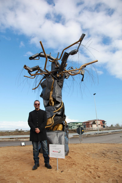 La materia diventa, quindi, la vera protagonista dell’opera, infatti la sua natura e lavorazione, sono il messaggio stesso che l’artista vuole esprimere. Esempio riuscitissimo di arte informale. Ricicl’art – ha detto Walter Pulignano – ha mantenuto come costante la sua anima itinerante e sperimentale, cambiando ed innovandosi di edizione in edizione. Dalle mostre di opere realizzate con materiale riciclato ospitate prima sulla spiaggia, poi negli edifici abbandonati, nelle strutture sportive e nei palazzi del centro storico non ancora inaugurati, fino al nuovo format: un’opera d’arte da donare alle città di Corigliano e Rossano, per creare un ponte simbolico fra le due comunità con l’auspicio che siano sempre più vicine.  Il sindaco Giuseppe Antoniotti, complimentandosi con il sodalizio guidato da Walter Pulignano, ha ringraziato l’Associazione per l’impegno profuso dal 2006 nella sensibilizzazione, dal basso, partendo dalle scuole, per il rispetto dell’ambiente, per la promozione della raccolta differenziata e la riduzione dei rifiuti. Se Rossano è una Città pulita, decorosa e di esempio nell’intero territorio, per la diffusa sensibilità ambientale, ciò lo si deve, insieme all’impegno dei cittadini, anche all’attività di associazioni come Ricicl’art e di società come la Ecoross. Preoccupato ed impegnato, con tutti gli uffici coinvolti, per e sui gravi disagi che le straordinarie piogge di questi giorni hanno arrecato a diversi nostri concittadini ai quali stiamo dando massima assistenza – ha chiosato Antoniotti – non ho voluto tuttavia sottrarmi, seppur per pochi minuti, a questo momento culturale condiviso e dall’alto valore pedagogico.