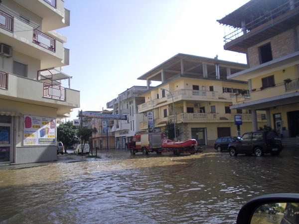 Colpa di incuria ambientale? Crediamo più semplicemente che la causa sia da addebitare all’eccezionalità dell’evento, che comunque trae la sua esplicazione, come tutte le cose, dall’incuria e poca responsabilità dell’uomo che, per cattiva burocrazia, cattiva politica ambientale, interviene, analizza, sostiene, piange, solo quando qualcuno piange i propri cari. Forse anche da noi si attende di piangere qualcuno per accorgersi che siamo in balia “dell’acqua”, quella che lo scirocco violento spinge dal mare e quello da attività pluviale. E la stagione autunno/inverno è appena iniziata. Nel pomeriggio il sindaco Roberto Siciliani ha emanato un’ordinanza che prevede la chiusura delle scuole per mercoledì 20 novembre. Intanto la macchina del Comune è a lavoro per superare l’emergenza: due pale meccaniche sono sulla spiaggia per creare una barriera protettiva ai canaloni dell’acqua piovana, mentre i tecnici controllano le vie del paese con il supporto della polizia municipale, vigili del fuoco e carabinieri di Cirò Marina. La seconda ordinanza del sindaco vieta il parcheggio, fino a venerdì 22 novembre 2013, su entrambi i lati delle seguenti strade cittadine: viale Libertà, piazza Cremissa, via Noè, via Cesare Battisti, via D’Annunzio e via Pola.