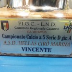 Nino Tifirò e Emanuele MummoloDopo la pesante sconfitta di 7 a 3 contro la Xerox Chianello di Paola nell’ottava giornata, l’Hellas Cirò Marina ritorna a vincere e lo fa alla grande. I ragazzi di mister Tavernese si approcciano alla gara con la massima determinazione e concentrazione sovrastando il Surdo, team di Arcavacata di Rende. La squadra del presidente Nino Trifirò chiude la metà di gioco con quattro reti, tripletta di Mummolo e gol di Maietta. Durante la ripresa gli ospiti diventano più intraprendenti cercando la rete che possa riaprirne le speranze, anche se l’Hellas più volte sbaglia sotto rete. La squadra di casa tiene indenne la propria porta per diversi minuti cedendo alla rete della bandiera di Milano. Negli ultimi minuti il Surdo prova a giocare “senza portiere” per avere l’uomo in più avanti ma va a sbattere sull’ottima difesa dei locali. Partita che si chiude con i festeggiamenti del trofeo vinto l’anno scorso nel campionato di serie D. Prossima partita il 30 novembre contro il Costa del Lione di Gizzeria Marina.
