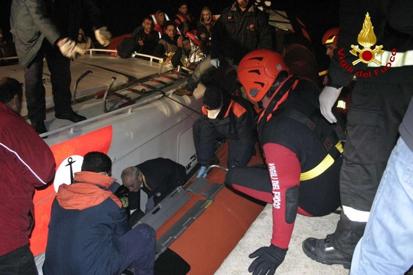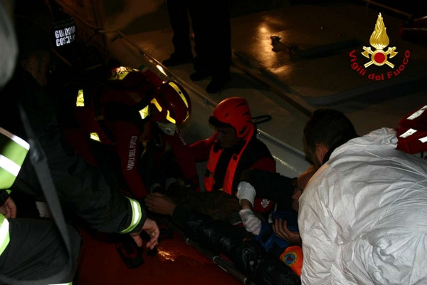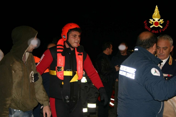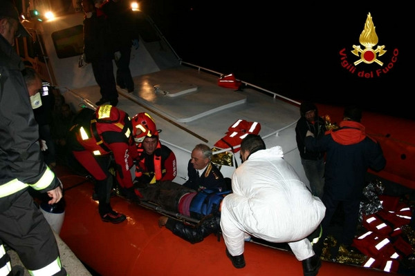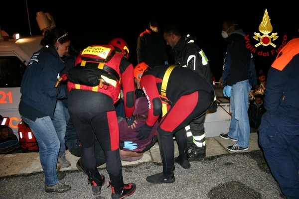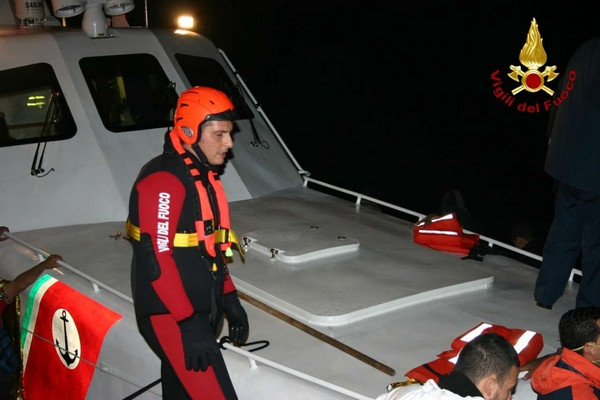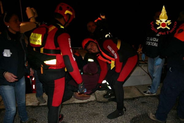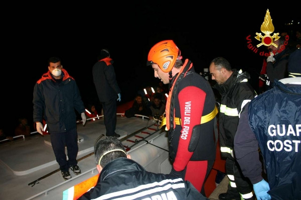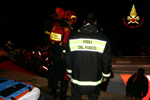 Barcone immigrati, le foto dell'arrivo nel porto di Crotone (1)Durante la serata del 2 dicembre 2013 personale dei vigili del fuoco di Crotone con una squadra potenziata da due unità con qualifica di soccorritore acquatico 2° liv e carro fari hanno fornito in serata a partire dalle ore 18:30 circa, assistenza durante lo sbarco dei clandestini coordinato dalla guardia costiera. Lo sbarco ha interessato 60 persone che facevano parte di un gruppo di profughi intercettati e poi portati in salvo con l’imbarcazione della guardia costiera previa trasferimento, con condizione di mare proibitive, da un barcone al largo della costa ionica calabrese. I vigili del fuoco di Crotone nonostante la grossa mole di lavoro dovuta alle avverse condizioni delle ultime ore in tutta la provincia hanno immediatamente risposto alla chiamata della Guardia Costiera prestando supporto con attrezzature e unita operative anche specialistiche.