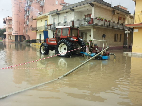 Pompa in azione a Cirò Marina“Questa Amministrazione si è sempre auspicata che la stampa e tutte le fonti di informazione intervenissero sui percorsi amministrativi e su tutto quanto riguardi la città, facendo in modo che gli stessi, con obiettività, facessero chiarezza assoluta. Gli eventi calamitosi, imprevedibili, che hanno flagellato la nostra cittadina e gli ultimi colpi di coda che, comunque, ci hanno trovato pronti a fronteggiarli in modo tempestivo ed adeguato, non hanno provocato danni catastrofici – scrive in una nota il sindaco di Cirò Marina, Roberto Siciliani. L’aiuto delle Istituzioni, dei volontari, degli operatori, dei cittadini, che sono stati i veri protagonisti di solidarietà e di Protezione Civile, ci hanno permesso, ad evento finito, di riconsegnare un paese efficiente, nonostante tutte le criticità ereditate. La violenta mareggiata ha provocato, purtroppo, ulteriori danni e, di conseguenza, ha richiesto un ulteriore impegno da parte di tutti noi. Ci rammarica aver dovuto constatare, purtroppo, che nel passato alcune vasche, pozzetti e tubazioni erano stati ostruiti, da alcuni cittadini, con calcestruzzo; nell’immediato, questa amministrazione è intervenuta, con tempestività, per eliminare gli inconvenienti, pertanto, invitiamo i cittadini tutti ad una maggiore e particolare attenzione nel rispetto della cosa pubblica. Prima dell’ultimo evento calamitoso, si era tenuto, nella sala consiliare, un incontro che ha visto la partecipazione di tutti gli Ordini tecnici e professionali (Ingegneri, ingegneri idraulici, architetti, geometri, geologi, …) e si è ampiamente discusso della conformazione geomorfologica dell’intero territorio ed in particolare del canalone “Artino” con annesso tubo, oggetto di pura fantasia. Da un’attenta analisi del territorio si è avuto modo di accertare che, nel passato, tutti gli interventi eseguiti sono stati rivolti a risolvere problemi zonali, aumentando le criticità di un assetto funzionale e globale dell’intero territorio.