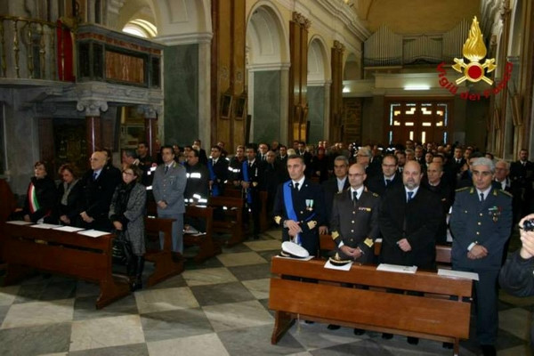Santa Barbara 2013 a Crotone (4)Oggi 4 dicembre, nella Basilica della Cattedrale di Crotone, si è celebrata la cerimonia religiosa in occasione della festività di Santa Barbara, protettrice dei Vigili del Fuoco e dei Marinai d’Italia. La cerimonia, da sempre fortemente sentita, si svolge da alcuni anni con la partecipazione congiunta di Vigili del Fuoco e personale della Capitaneria di Porto e ha visto la partecipazione massiccia delle famiglie degli uomini dei due corpi. Al termine della messa, le autorità intervenute si sono spostate presso la sede centrale del comando dei Vigili del Fuoco di Crotone dove, il comandante provinciale Giuseppe Bennardo, ha tenuto il consueto discorso sull’attività svolta dal comando nell’ultimo anno, e ha consegnato le benemeranze al personale che recentemente è stato collocato a riposo.