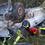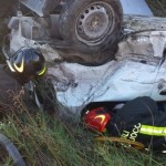 Incidente sulla SS106 a Crotone (12)Nel primo pomeriggio alle ore 14.25, una squadra dei vigili del fuoco di Crotone, è intervenuta a Crotone sulla SS106 per un incidente stradale, dove sono rimaste coinvolte due autovetture, che, scontrandosi sono finite entrambe fuori strada in un canalone della raccolta acqua. I vigili del fuoco per poter estrarre la persona dall’abitacolo, hanno dovuto tagliare alcuni pezzi dell’auto entrare all’interno e rimuovere altri ostacoli, riuscendoci in poco tempo, con l’altra autovettura disposta sopra in precarie condizioni di stabilità. I feriti sono stati trasportati dal 118 in ospedale.