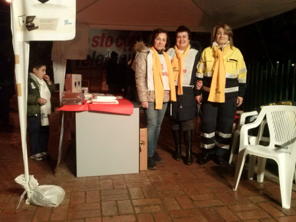 Nel nostro caso tre giovani artisti locali, Italia De Simone, Giuseppe Gagliardi e Gina Renzo, sono stati, per così dire, “adottati” da altrettante attività commerciali, rispettivamente Cartoleria Dennistore, Bar Tabacchi Marasco e Edicola Amantea, le quali in questi giorni stanno proponendo la vendita di biglietti abbinati alle opere pittoriche a loro affidate, fino all’estrazione finale dei numeri vincenti, prevista per il 4 gennaio prossimo. Purtroppo la pioggia caduta a sprazzi nel pomeriggio di domenica ha reso impossibile la prevista esibizione della band “Mine Vaganti” che avrebbe sicuramente dato il giusto tocco musicale alla giornata di festa che ha anche “inaugurato” un clima natalizio solitamente impalpabile da queste parti. Fortunatamente le nubi minacciose e plumbee sul cielo di Torretta si sono pian piano diradate e la serata si è conclusa, come già detto, in bellezza, sia per la partecipazione di gente, sia per la raccolta fondi destinata alla Maratona Telethon di questi giorni. Con grande soddisfazione sia dell’instancabile coordinatore Marasco, sia per i volontari Prociv alternatisi sotto il gazebo nei due giorni di iniziativa, capeggiati dal presidente Domenico Campana, e cioè Domenico Acri, Rocco Aiello, Domenico Basile, Cosimo De Roberto, Annunziato Esposito, Aldo Flotta, Salvatore Parrilla, Franco Santoro, Maria Scigliano, Caterina Talamo, Clelia Geremicca, Annamaria Acri, Ezia Celsi, Tiziano Marchetti, Mario Forciniti, Federico Panza, oltre alla cordiale collaborazione logistica di Rocco Santoro.