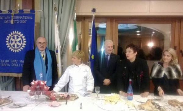 presidente_e_socio_AmorusoGli auguri natalizi del Rotary Club di Cirò Marina “Terra degli Enotri” presieduto da Domenica Cerrelli, hanno brillato per sensibilità ai valori del service e per l’apertura a nuovi Soci nel Club fondato da Paul Harris. Sabato 14 dicembre hanno iniziato il percorso rotariano Clara Chiarello medico pediatra presso l’ospedale S. Giovanni di Dio di Crotone e Mario Pugliese Dirigente Scolastico dell’Istituto Omnicomprensivo di Strongoli. La serata si è aperta con i saluti della Presidente Domenica Cerrrelli che ha espresso tutta la sua soddisfazione nell’accogliere i nuovi soci: “Quando ci si conosce, perché si lavora insieme per un obiettivo condiviso, il Rotary diventa sempre più accogliente, diventa la grande famiglia del Rotary.” Una soddisfazione da parte di tutti i presenti ancora maggiore nel momento della Consegna di una “Paul Harris” alla giovane coppia Figoli-Gentile che ha devoluto alla Fondazione i proventi della spesa delle bomboniere del proprio matrimonio. Il Socio formatore Antonio Amoruso nel porgere i suoi migliori auguri natalizi al Club e a tutti i presenti ha così concluso: “Il Natale è un giorno in cui mettiamo in pratica i migliori precetti che abbiamo imparato, i migliori che conosciamo, i migliori fra quelli che ci sforziamo di conoscere. Se il Rotary rimarrà sempre fedele ai suoi alti e nobili ideali, ogni giorno sarà Natale”. Non sono mancati momenti di commozione alla lettura conclusiva della Preghiera di un buon Rotariano recitata dello stesso Amoruso prossimo alla partenza per una nuova missione Rotary prevista per il 26 dicembre, destinazione Zanzibar.
