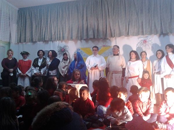 Iniziative scuola L&D Siciliani Cirò Marina (9)Il ricco cartellone di appuntamenti che la Scuola Siciliani ha proposto alle famiglie nel mese di dicembre si è concluso con la suggestiva benedizione dei bambinelli durante la celebrazione eucaristica di giorno 20 nella parrocchia di S. Cataldo. Dopo la ricorrenza di S. Martino e trascorsa la pausa causata dalle avverse condizioni climatiche, l’equipe educativa della Scuola è entrata nel vivo delle programmazioni, individuando un percorso per realizzare iniziative e progetti concreti rispondenti ai bisogni del territorio e dei cittadini. Lo sfondo comune delle azioni effettuate è senz’altro l’intesa tra il gruppo operativo e le famiglie per il comune interesse. Nella realtà scolastica della “Siciliani”, infatti, l’entusiasmo e la passione accompagnano il connubio scuola – famiglia con le azioni. Le iniziative realizzate sono il frutto dell’essenza più profonda dell’impegno educativo della Scuola “Siciliani” che viene offerto con competenza ed obiettività a favore dei bambini come missione preziosa che si arricchisce del carisma delle suore Figlie di S. Anna. Il primo appuntamento, che ha visto protagonisti i bambini della Scuola, si è svolto il 7 dicembre a Palazzo Porti. Una meravigliosa partecipazione alla manifestazione promossa dalla Fidapa e da Telethon ma soprattutto uno slogan ed una motivazione ricca di speranza e di forza nel significativo volto del bambino e del suo “Io esisto”. Nel duro e faticoso compito di educatori senza dubbio non si deve mancare nel proporre ai bambini la partecipazione ad iniziative dalla connotazione solidale e consentire loro di far vivere, attraverso l’esperienza, la speranza di potere aiutare il prossimo. Il 14, poi, si è tenuta la manifestazione finale di “Rigiocattolo”. La Scuola è stata partner con l’Associazione “Idea” di questa bellissima, ulteriore, iniziativa di solidarietà a favore di chi non ha. La Scuola “Siciliani” è stata centro di raccolta di giocattoli nuovi ed usati ed i piccoli hanno partecipato attivamente alla tombolata ed alla pesca di beneficienza realizzate durante la manifestazione finale. Una nota di merito va dunque ascritta anche ai presidenti delle due associazioni che hanno dato l’opportunità alla Scuola di partecipare attivamente consentendo ai piccoli di acquisire la consapevolezza che c’è più gioia nel dare che nel ricevere. Gli appuntamenti tradizionali ma sempre di grande intensità si sono vissuti anche a Scuola. Il 13 dicembre infatti, dopo diverse serate di preparazione trascorse in un clima accogliente e familiare, alcuni genitori ed insegnanti hanno allestito la rappresentazione scenica “S. Lucia”. La serata è stata aperta con la sigla intonata da tutti i bambini della Scuola. La drammatizzazione ha narrato la vita della Santa ed è stata interpretata da: Tiziana Arcuri (Lucia), Rosa Salerno (S. Agata), Vincenzo Lo Presti (S. Pietro), Giusy Affatato (Eutichia), Stefania Arcuri (Diocleziano), Elisa Capoano (Pascasio), Donatella Petti (Giovane patrizio), Tiziana Fico (Prisca), Pompea Gentile (Valeria), Stefania Portone (Anna), Rita De Fine (Claudia), Antonio Arcuri (Soldato), Lucia Scilanga (voce narrante). A fine serata, nel giardino della Scuola, è arrivata, in groppa ad un asinello, S. Lucia che ha distribuito doni a tutti i bambini.