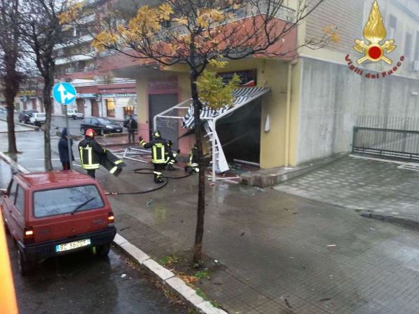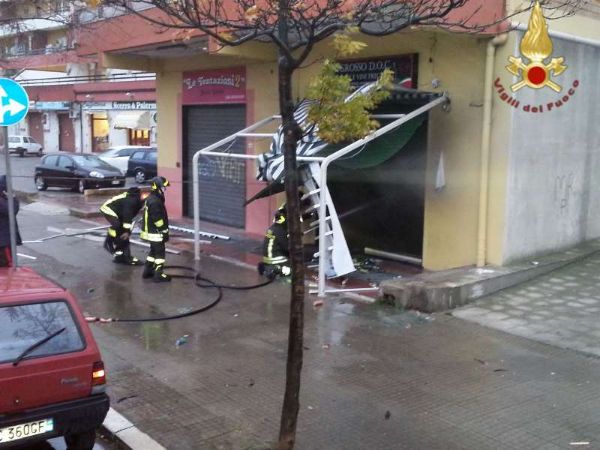 Incendio negozio a Crotone (1)Questo pomeriggio alle ore 16:00 circa una squadra dei vigili del fuoco del Comando provinciale di Crotone è intervenuta  in via Giovanni Palolo II a Crotone per incendio di un deposito per la vendita all’ingrosso di bibite  causato da una forte esplosione che ha divelto la serranda e la porta d’ingresso, scaraventando quest’ultima ad alcuni metri sulla strada principale. Le fiamme hanno distrutto la merce e le scaffalature all’interno del locale, l’immediato intervento dei vigili del fuoco ha evitato che l’incendio causasse ulteriore danni alla struttura e alle abitazioni sovrastanti. Inoltre i vigili del fuoco di Crotone già dalle prime ore della mattina sono stati impegnati in numerosi interventi dovuti al forte vento che imperversava sull’intera provincia, alberi caduti su sede stradale, impalcature pericolanti, palo di illuminazione pubblica divelto dal vento, cornicioni pericolanti ed altri normale routine.
